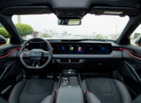 內飾部分的核心部件是貫穿中控臺的懸浮式“帶魚屏”,由12.3英寸液晶儀表與27英寸中控副駕屏組成,中控臺與門板處還有環繞式紅色飾條作為補充,搭配座椅、扶手箱上的紅色縫線,看起來更有層次感。運動造型的三輻式方向盤、旋鈕式換擋等配置都沒有任何變化,體現出家族化的特征。