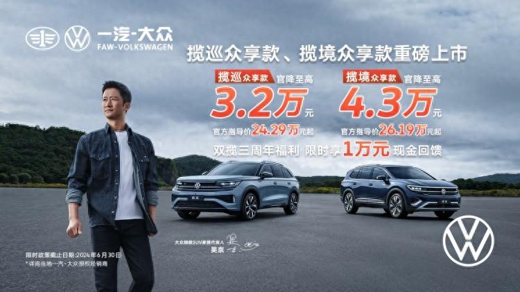 [新車上市]6月7日,一汽-大眾攬境眾享款、攬巡眾享款正式上市,作為衍生版本,新車不光在內外設計、功能配置方面全面升級,同時全系指導價至高官降4.3萬元,目前指導價僅需24.29萬元起,具體售價信息可參考下表: