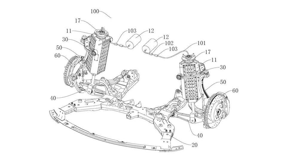從一份云輦-Z的專利里,我們非常清楚的能夠看出,有兩個非常大的六棱形筒柱,套在雙叉臂前懸掛的安裝位上了。而這兩個筒柱,是用來提供支撐的直線電機,而且還是永磁電機,還提供了大量的電磁組件來實現磁通量的快速調節。而磁通量的快速調節,能實現的,就是磁力互斥的效果,最離譜的效果是仰望U9那次“原地起跳”的效果,仰望U7用云輦-Z同樣也可以。
