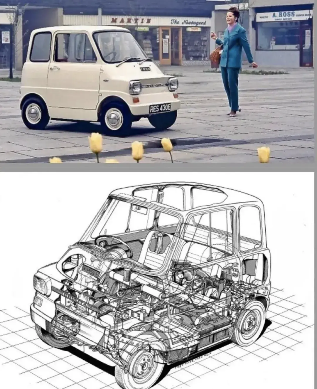 福特進軍英國市場后,前瞻性地想到了全球污染與城市擁堵的兩大問題,于是提出了解決方案,就是當今的主流純電汽車。1967年,英國福特研發了一款設計非常緊湊的城市代步純電小車,名為Comuta。