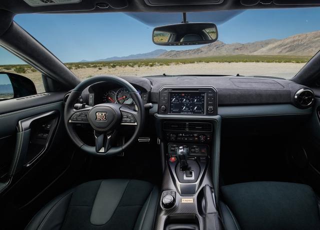 面對即將到來的告別,日產精心打造了兩款特別版GT-R,作為R35系列的最終章。GT-R T-Spec Takumi版本采用了獨特的午夜紫色涂裝,外觀神秘而深邃。該車型配備了NISMO級別的碳陶瓷剎車系統,以及20英寸金色涂裝的NISMO RAYS鍛造輪轂,不僅提升了視覺沖擊力,也增強了車輛的制動性能與輕量化效果。NISMO調校的車輛動態控制系統和拓寬的前擋泥板設計,進一步優化了車輛操控穩定性和空氣動力學表現。內飾方面,采用的森綠色配色方案,為駕駛艙營造了一種獨特且高級的氛圍。