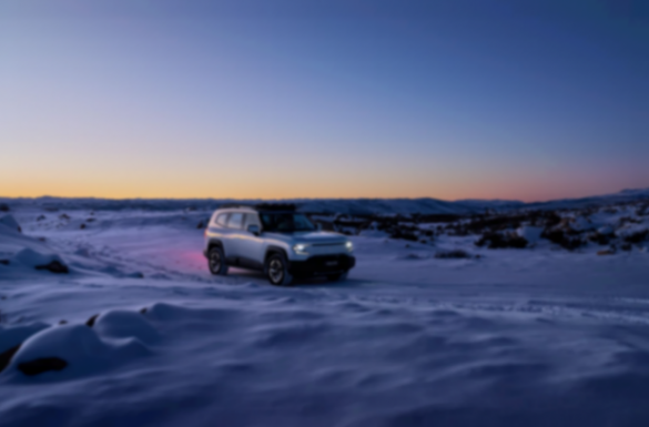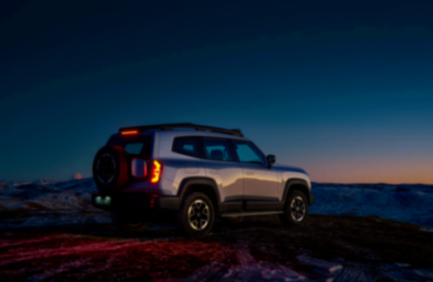 車頭前臉保留了一部分傳統進氣中網,畢竟這款車是增程器技術體系,還是需要進氣散熱模塊的。而車頭兩側并非圓形復古大燈,而是看起來比較犀利的分組燈光模塊,大燈上下布局,半包圍了獠牙造型燈光。關鍵是車頂還集成了原廠的探照燈,這是可以合法上路的,實際體驗亮度照亮兩個籃球場的面積沒什么問題。