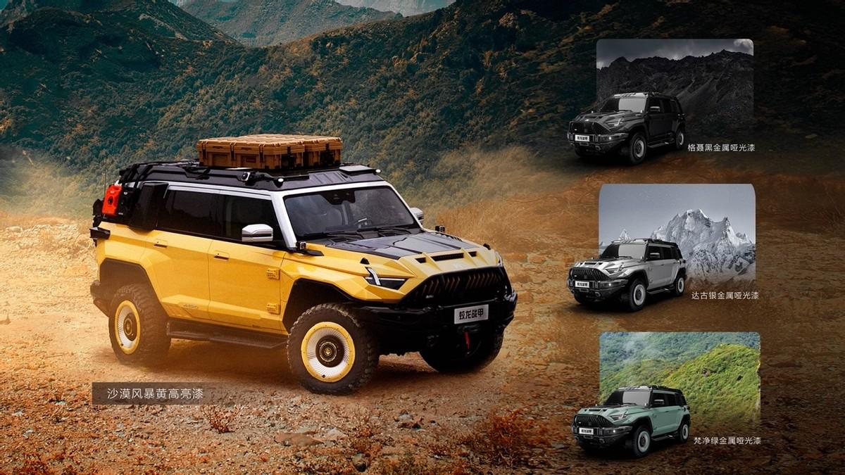 猛士917蛟龍戰(zhàn)甲標(biāo)配沙漠風(fēng)暴黃軍事涂裝,采用高亮漆工藝,盡顯高級感。在繁華都市,它是耀眼明星,萬眾矚目;在曠野戈壁,它是狂野風(fēng)暴,一騎絕塵。此外,為了滿足不同消費者的個性化需求,蛟龍戰(zhàn)甲還提供了達(dá)古銀、格聶黑、梵凈綠等三種選裝車色。每一種顏色都有其獨特的韻味和內(nèi)涵,讓人過目難忘。