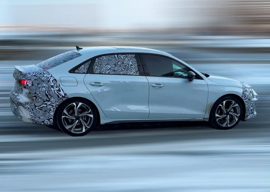 從其諜照?qǐng)D片可以發(fā)現(xiàn),新車的前臉也貼滿厚厚的偽裝貼,可以猜測(cè)這也是未來新車主要變動(dòng)的地方,而從細(xì)節(jié)可見其樣式與此前在3月份發(fā)布的海外新款?yuàn)W迪A3有著較高的相似度。