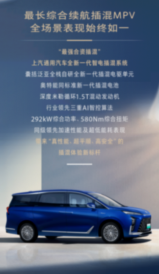 作為別克品牌的首款插電混合動力MPV,搭載1.5T發動機和電動機,綜合最大功率292千瓦,峰值扭矩580牛·米。在滿油滿電狀態下,純電續航可達138公里,綜合工況續航高達1370公里,標志著別克品牌正式加入新能源車陣營。