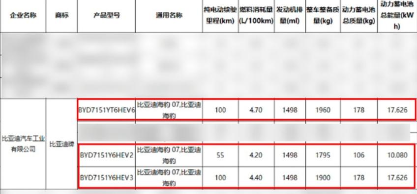 動力方面,海豹07 DM-i 1.5L發動機最大功率74kW,電機功率160kW,分別匹配10.08kWh和17.626kWh磷酸鐵鋰電池組,純電續航里程分別為55km和100km,綜合工況油耗分別為4.2L/100km和4.4L/100km;1.5T發動機最大功率115kW,電機功率200kW,匹配17.626kWh磷酸鐵鋰電池組,純電續航里程100km,綜合工況油耗4.7L/100km。