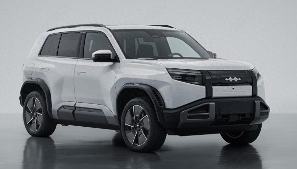 車身側(cè)面看起來(lái)也比較有力量感,采用了棱角分明的腰線,線條感很強(qiáng),采用隱藏式門把手設(shè)計(jì),采用大尺寸的輪轂,還有黑色護(hù)板,與較高的離地間隙,整個(gè)越野氣息還是比較強(qiáng)的。車尾造型比較方正,采用橫向設(shè)計(jì)的尾燈,很有辨識(shí)度。尾部還有外觀是儲(chǔ)物箱,不過(guò)這也與此前曝光的諜照有所不同,諜照中的是外掛備胎,并且采用了側(cè)開(kāi)尾門設(shè)計(jì)。車身尺寸方面,根據(jù)申報(bào)信息,新車的長(zhǎng)寬高分別為4605/1900/1720毫米,軸距2745毫米。