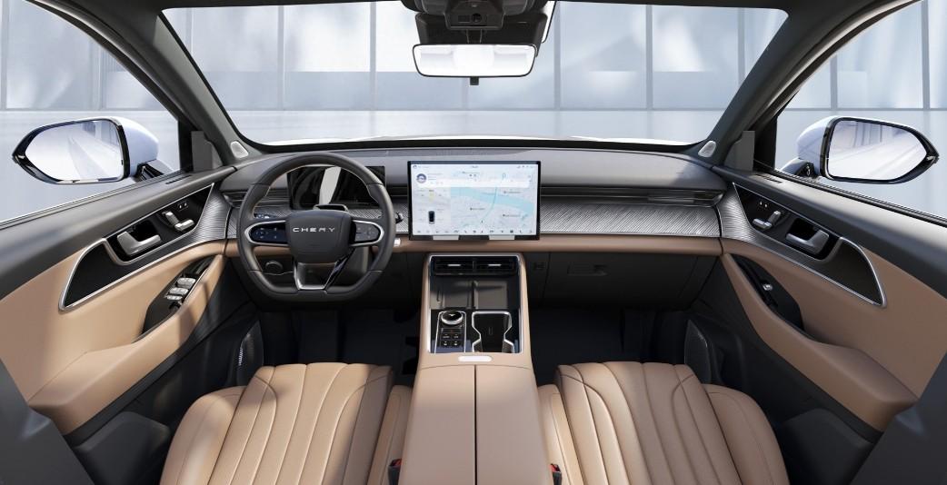 內飾設計方面,瑞虎8L第一眼看過去給人感覺很簡約,中控區域布局清晰且簡潔,并沒有采用過多繁雜的設計,全液晶的儀表盤,加上懸浮式的中控大屏,將會集成諸多功能于一體,看上去顯得很有科技感,并且,新車或將還會搭載高通驍龍8155車機芯片,以及配備HUD抬頭顯示/手機無線充電面板等實用配置,在做工以及用料上,看上去給人感覺相當的扎實,所見之處大面積皮革材質的包裹,加上金屬拉絲面板的覆蓋,以及鍍鉻飾條的裝飾,從而提升了整體內飾的豪華感,此外,新車還采用了平底式的多功能方向盤,以及懷擋式的換擋機構,從而一定程度上進一步增強了整體的高級感,值得一提的就是,新車在中央通道區域還配備了物理按鍵以及旋鈕控制,從而一定程度上更利于駕駛員日常便捷式操作。
