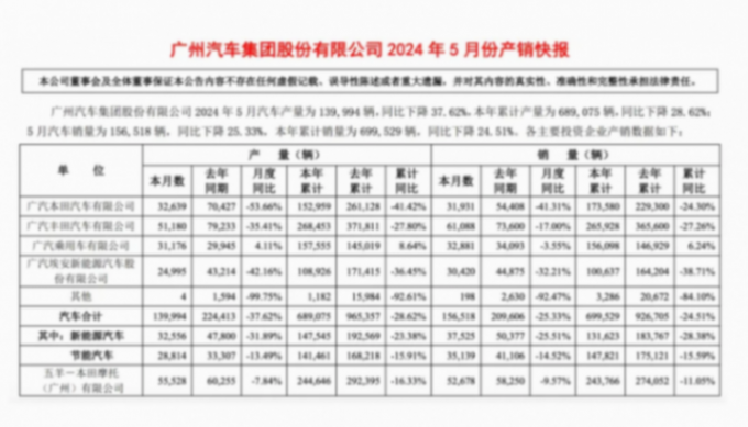 來(lái)看廣汽銷量數(shù)據(jù):5月銷量為15.65萬(wàn)輛,同比下降25.33%,1-5月累計(jì)銷量為69.95萬(wàn)輛,同比下降24.51%。