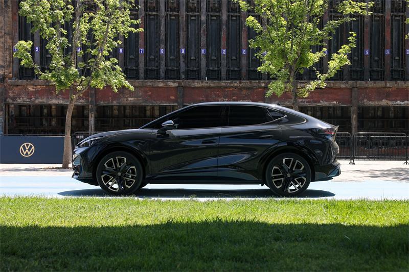 從側(cè)面看,ID. 與眾轎跑SUV的造型和車身比例非常好看,優(yōu)雅又動(dòng)感。俯沖式車頭、鋒銳平行腰線、Fastback Coupe大溜背、傾斜的A柱、A柱與車頂流線銳利的夾角、上翹的后窗線、前部上翹的前唇、尾部上翹的小鴨尾、還有21英寸機(jī)甲輪轂等元素把它蓄勢(shì)待發(fā)的轎跑英姿詮釋得淋漓盡致。