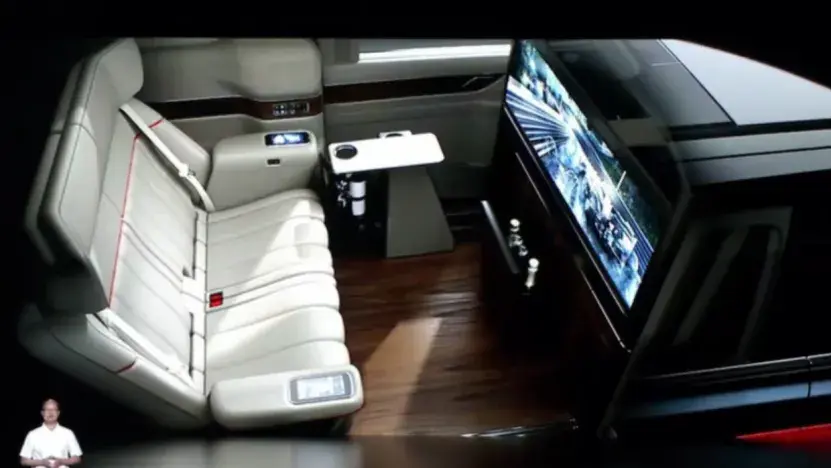 功能性上,L380常規的6、8座版本,沒有類似理想MEGA、寶馬7系那樣的“大彩電”,但是二排有兩個安裝在前排靠背后面的獨立娛樂屏。其它類似220V電源、可保溫、制冷的冰箱則都有配備。