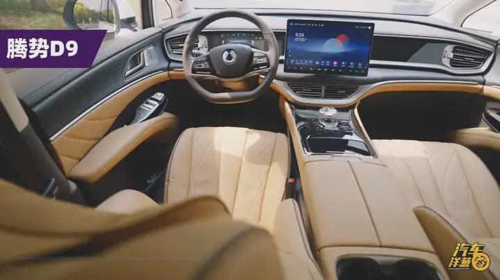 騰勢D9的前排從用料、設計上都有明顯的商務氣息,屏幕更大、更簡潔。但便利性也有所下降,功能配置大量集中在車機內,座椅寬大、舒適,儲物空間的表現中規中矩。
