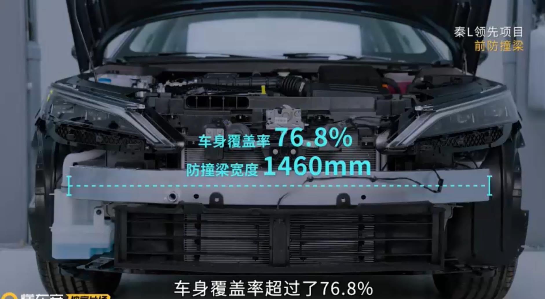 在具體項(xiàng)目上,秦L在前防撞梁上采用了高強(qiáng)度鋁合金材料,寬度為1460mm,厚度大約1.6mm,覆蓋率高達(dá)76.8%,結(jié)合其4個(gè)吸能盒和副防撞梁的設(shè)計(jì),這種設(shè)計(jì)比許多同級(jí)別車型更加扎實(shí),幾乎可以說是完美的表現(xiàn)。