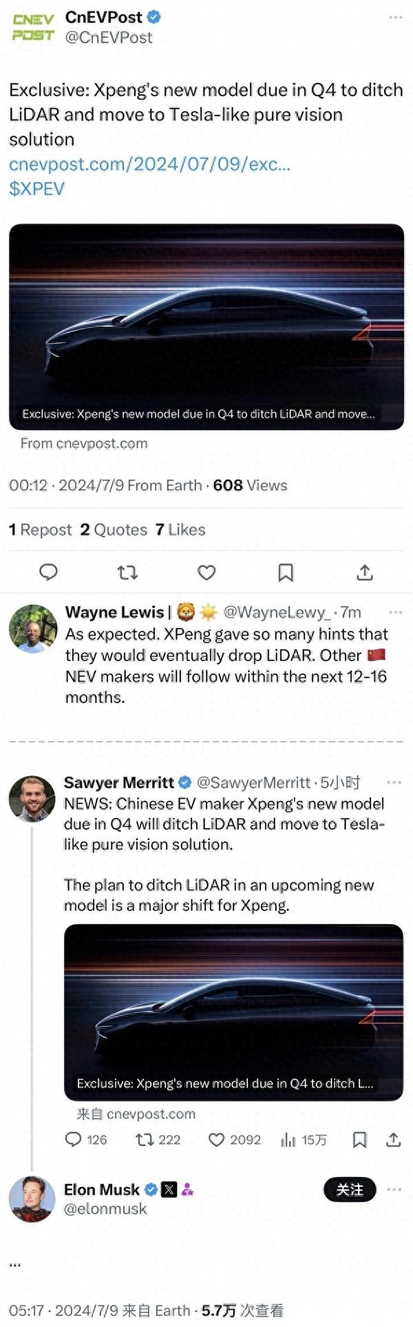 近日,有博主透露,小鵬汽車將在第四季度推出的新型B級純電轎車中,放棄使用激光雷達,轉而采用類似特斯拉的基于純視覺的智能輔助駕駛解決方案。這一改變標志著小鵬汽車在技術路線上的重大調整。對此,特斯拉CEO埃隆·馬斯克在社交媒體上用一串省略號回應了這一消息,暗示了對中國車企去除激光雷達舉措的關注。