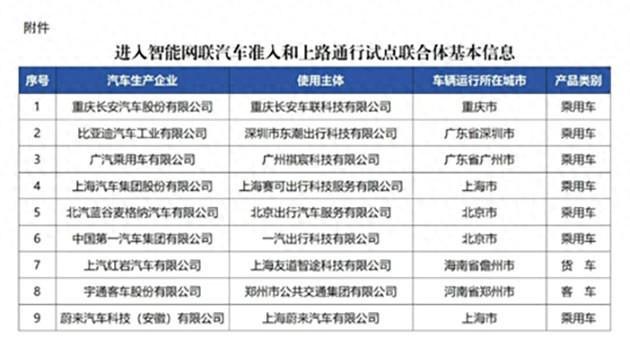 一、四部門確定“進入試點的聯合體”,是否代表允許具備自動駕駛功能的智能網聯汽車上路通行?
