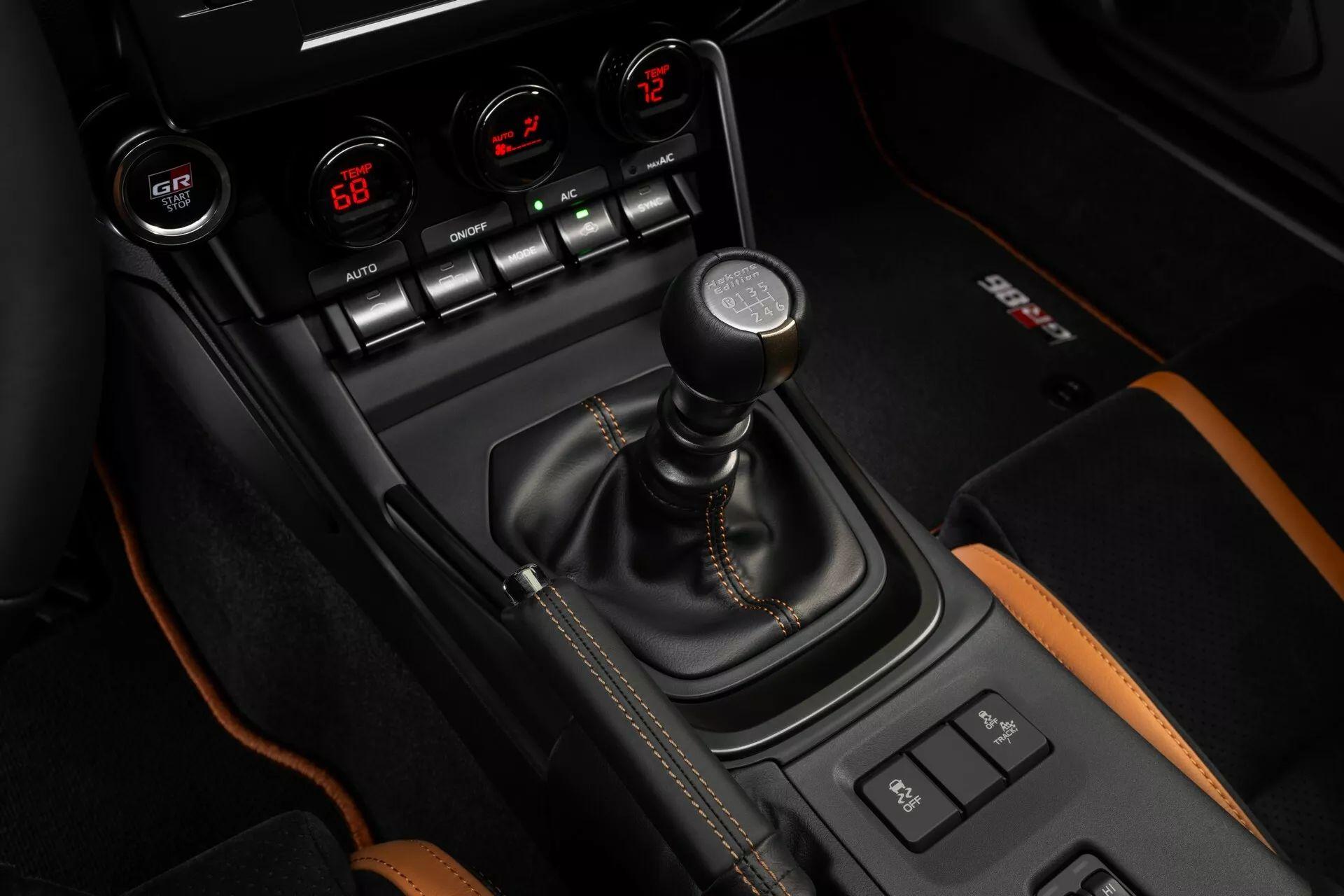 2025款GR86的內(nèi)部依舊采用較為簡約的設(shè)計(jì)風(fēng)格,轉(zhuǎn)速表位于中央且可以顯示G值及多項(xiàng)行車數(shù)據(jù)的數(shù)字儀表搭配帶有“GR”徽標(biāo)的運(yùn)動(dòng)型多功能方向盤營造出較強(qiáng)的駕駛氛圍。此外,兩款特別版車型不僅采用專屬的棕褐色配色風(fēng)格,還換裝了全新的擋把且?guī)в袑巽懪疲蔑@其特別版車型身份。
