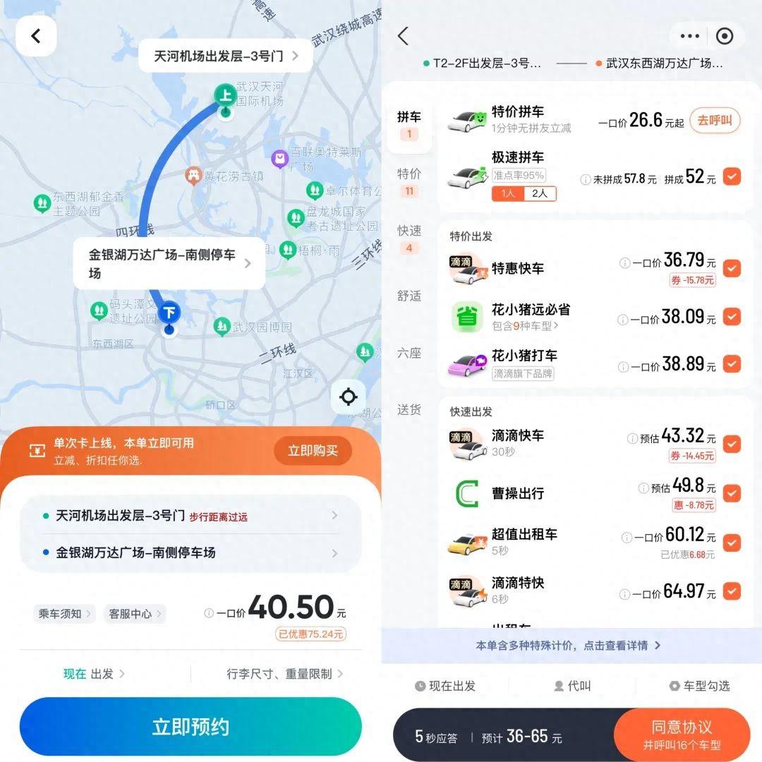 在乘車價格上,很多乘客給出的評價是便宜,雖然有些訂單價格未必能比其他網約車更便宜,但基本比出租車價格優惠。以武漢天河機場至金銀湖萬達廣場為例,蘿卜快跑優惠后價格是40.50元,滴滴特惠快車優惠后是36.79元,出租車價格超過60元。記者也多次更改終點位置,蘿卜快跑的價格均優于出租車,但與其他網約車平臺相比,價格優勢并不明顯。