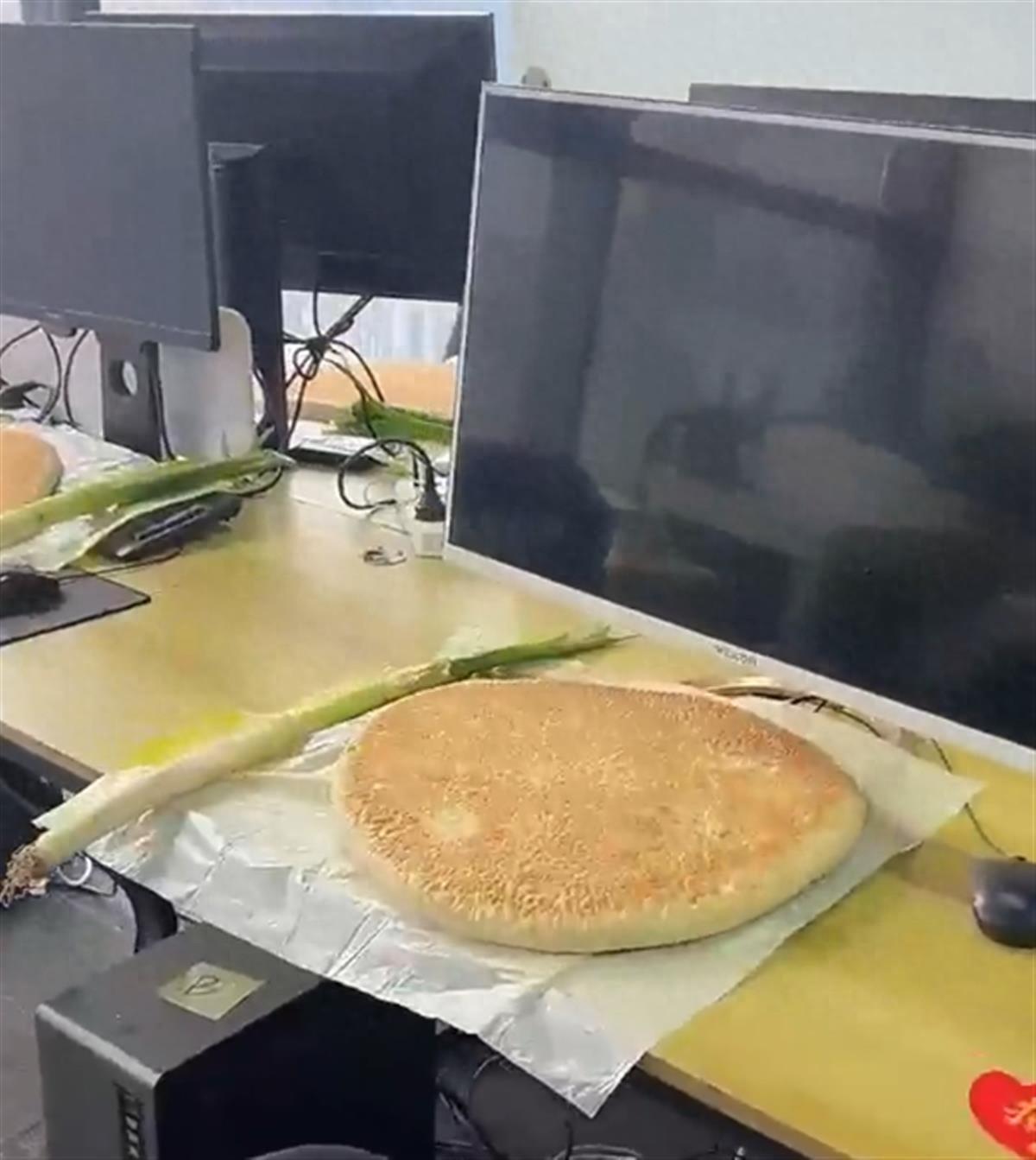 18日,公司開工,劉先生送給同事們每人一個壯饃和一根大蔥。劉先生的同事潘先生介紹,他是第一次看見這么大的大餅,直徑有幾十厘米,很震撼,感覺像一個盾牌,“味道不錯,但是感覺有點干”。
