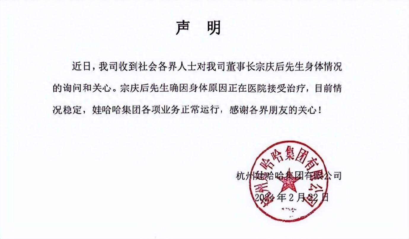 22日,有媒體報道稱,娃哈哈創始人宗慶后目前在浙江大學醫學院附屬邵逸夫醫院ICU病房救治,引起公眾廣泛關注。對此記者聯系娃哈哈公關部相關負責人,對方表示目前情況穩定,感謝社會各界關心。
