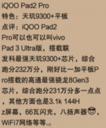 1. iQOO Pad2 Pro:天璣9300+加持,跑分秒殺一加,66瓦閃充+WiFi7,性能炸裂!