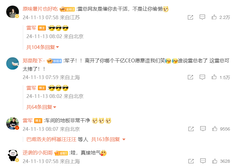 雷軍在直播時表示,在車間睡覺的圖片還引來網友“指責”,認為雷布斯不應該在生產車間不穿工作服、不戴安全帽。對此,雷軍也表示,該區域并非生產區域,是自己的疏忽,以后會注意。除了及時承認“錯誤”,雷布斯主打一個寵粉,而且還聽勸。