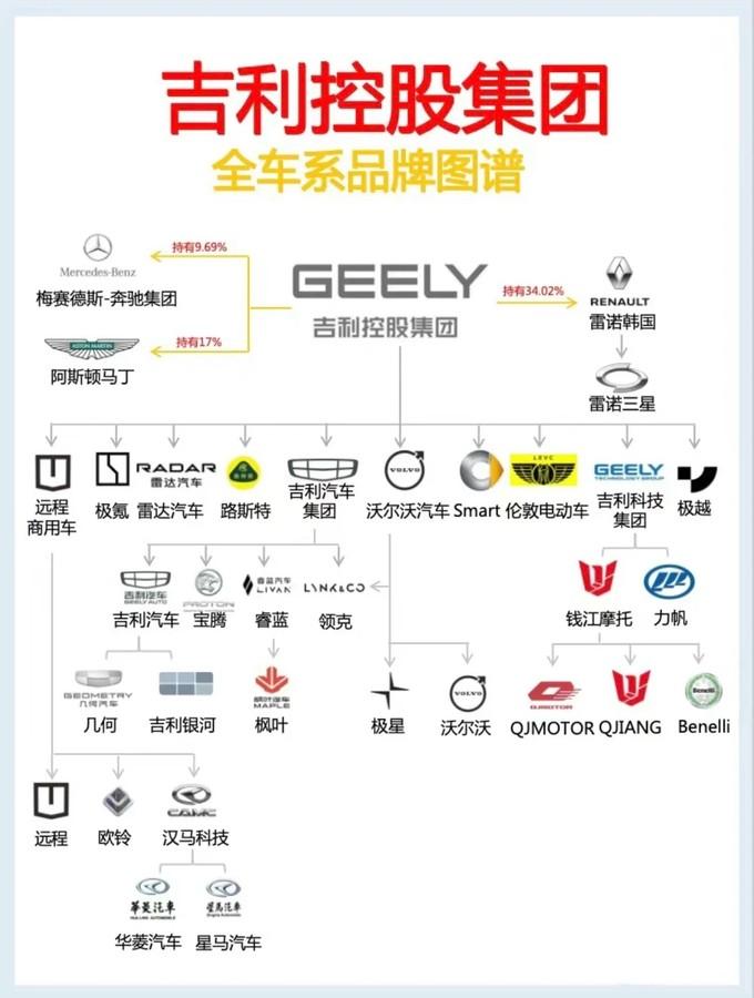 ‌具體的調整看起來可能有點蒙,結合吉利控股集團的品牌矩陣圖會比較清晰。從吉利的品牌結構可以看出,極氪本來歸屬于吉利控股集團,而領克則歸屬在吉利汽車集團旗下,極氪和領克并不在一個公司旗下。經過此次調整,吉利控股集團將持有的極氪11.3%的股權轉讓給吉利汽車集團,轉讓后吉利汽車集團擁有了極氪62.8%的股權。極氪不再歸屬在吉利控股集團旗下,而是歸屬于吉利汽車集團。優化后,極氪持有領克51%的股權,領克剩余的49%股份繼續由吉利汽車旗下全資子公司持有。