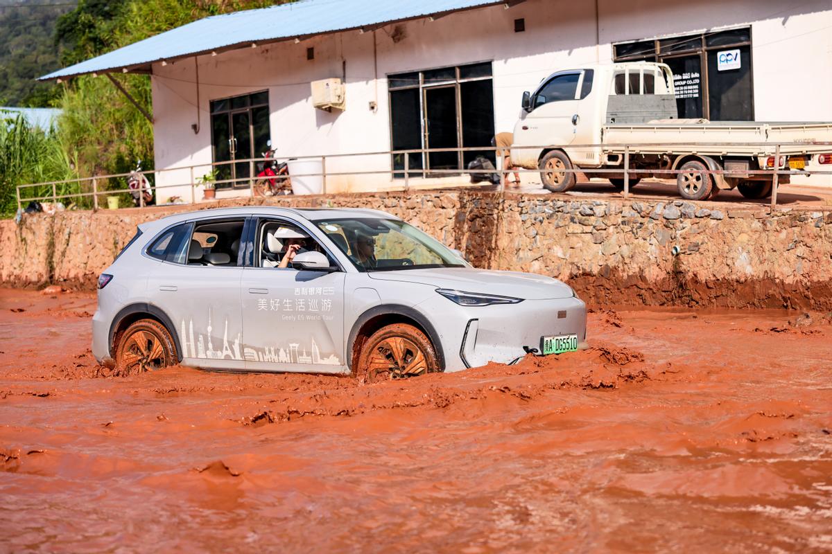 今年9月,吉利銀河E5車隊在老撾遇到百年一遇的洪澇災害,部分路段具有腐蝕性的黃泥水深超過30cm。即便如此車隊仍然安全通行,并繼續行駛超過2000km抵達吉隆坡。由此也足見吉利銀河E5出色的防水和防腐表現。