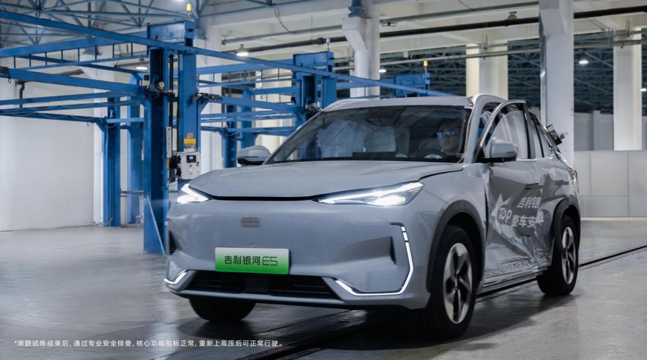 吉利銀河E5試驗車完成串聯(lián)試煉,經(jīng)過安全排查,核心功能指標正常,重新上高壓后可正常行駛