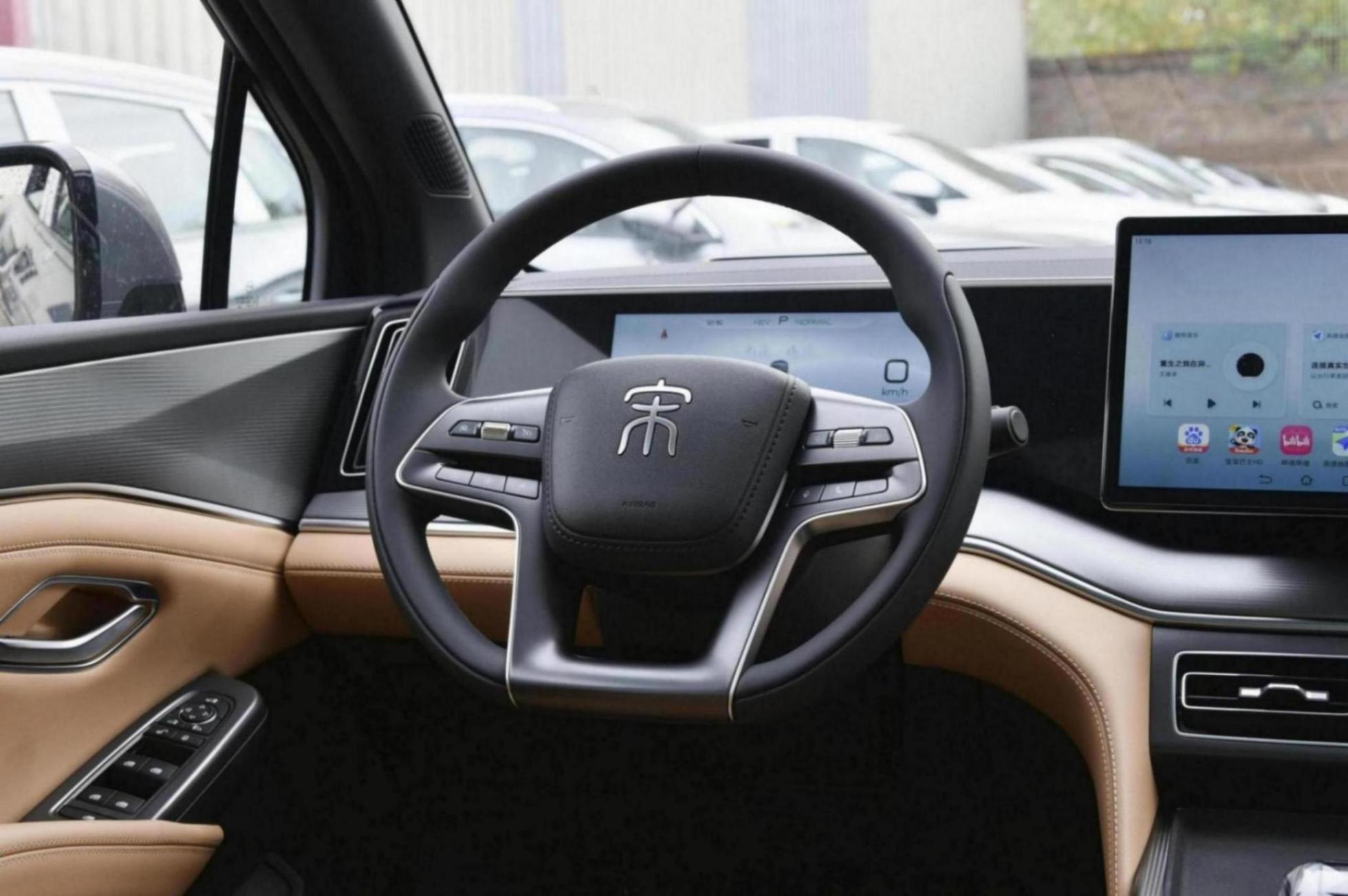 該車配備了比亞迪最新樣式的四幅式方向盤,表面經(jīng)過了啞光處理,質(zhì)感還算不錯,在方向盤的3點和9點位置還帶有凸起,握上去比較順手。而在中央操控區(qū)擋把的周圈,該車還布置了一系列的實體按鍵,可以實現(xiàn)駕駛模式切換、動能回收模式調(diào)節(jié)以及音量調(diào)節(jié),增加了使用的便利性。