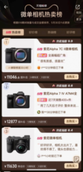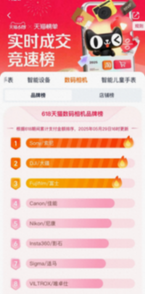 國補疊加天貓618,帶動數碼相機消費需求熱潮,品牌迎來銷量大爆發。