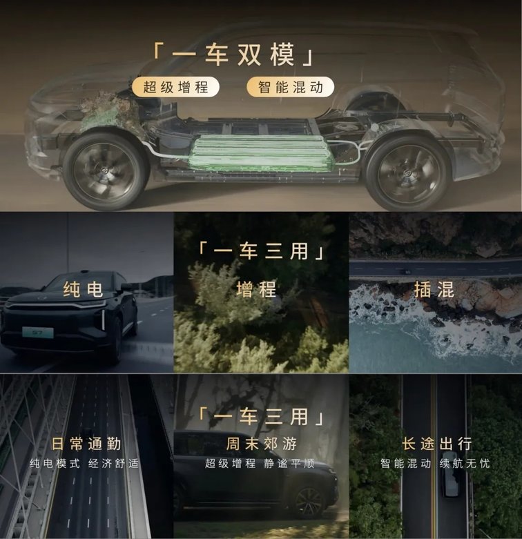 反觀傳祺向往S7,拒絕油改電,一開始就是誕生自新能源平臺架構(gòu),搭載了行業(yè)首創(chuàng)“可增程可插混”雙模黑科技,輕松實現(xiàn)“智能混動+超級增程”兩種模式,可油可電可增程!