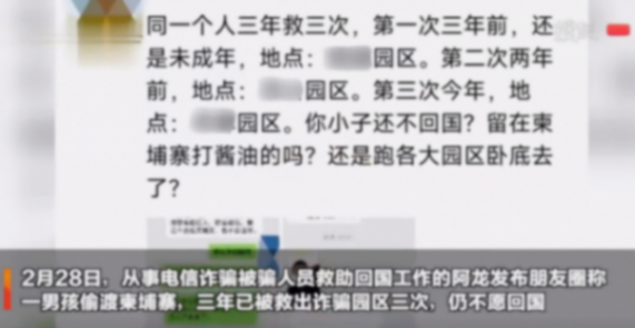 近日,一條令人震驚的朋友圈消息在社交平臺(tái)上流傳開來,引起了廣泛的關(guān)注和熱議。從事電信詐騙被騙人員救助回國(guó)工作的阿龍?jiān)?月28日發(fā)布了一條莫名其妙的朋友圈:"同一個(gè)人,三年已被救出詐騙園區(qū)三次。你是在柬埔寨打醬油嗎?還是跑各大園區(qū)臥底去了?"