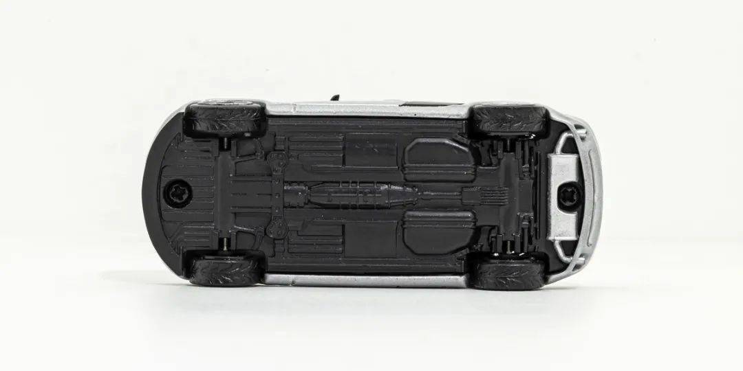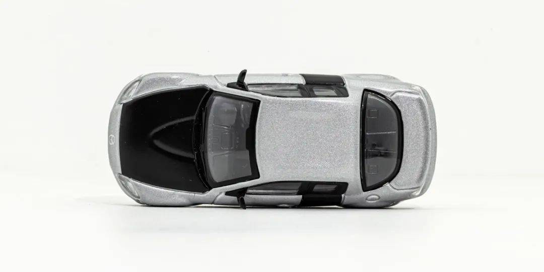 模型的漆面質感不錯,銀色金屬漆顆粒比較均勻,車頂平整,也沒有添加像魚鰭天線這樣的細節;模型的內飾也是黑色塑料原色,基本也沒啥細節可言,而前雨刮器也是浮雕在前擋風上的。