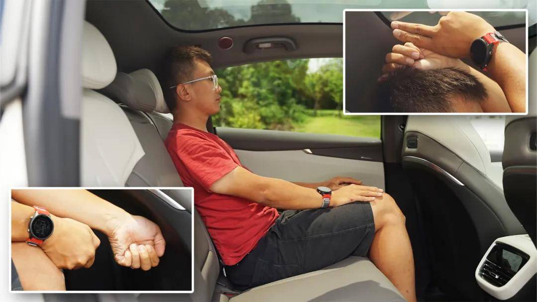 空間上L07與SL03并沒有什么本質區別,我身高170cm,體重71kg,前排調整好坐姿后,頭頂距離全景天幕擁有2拳的空間。此時后排可以擁有大約2拳2指的腿部余量和1拳2指的頭部空間。考慮到級別,雖然談不上空間巨大,但出色的坐墊長度和足夠腿部空間,也還是比較舒服的。