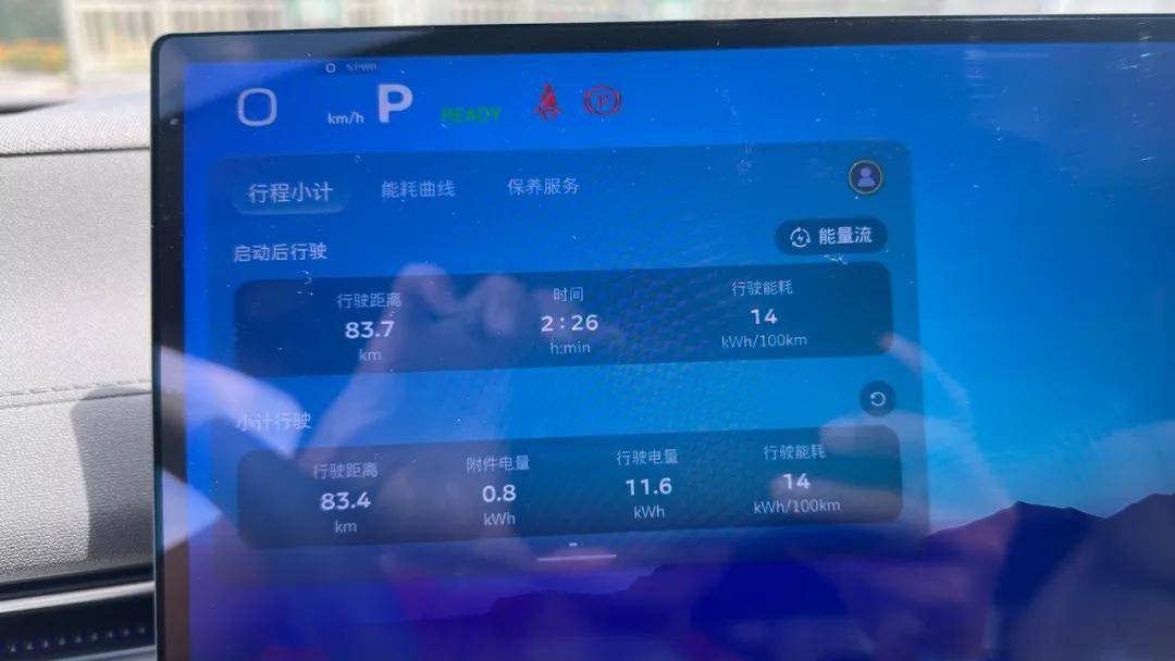 最后來說一下L07的能耗。我這臺車是純電版,當天重慶氣溫只有30°C左右,我全程開啟26℃自動空調(不能開太低,L07的空調很涼),車內2人,行駛83.4km,均速34km/h,最終L07取得了14kWh/100km的表顯行駛電耗,算是還不錯的水平。