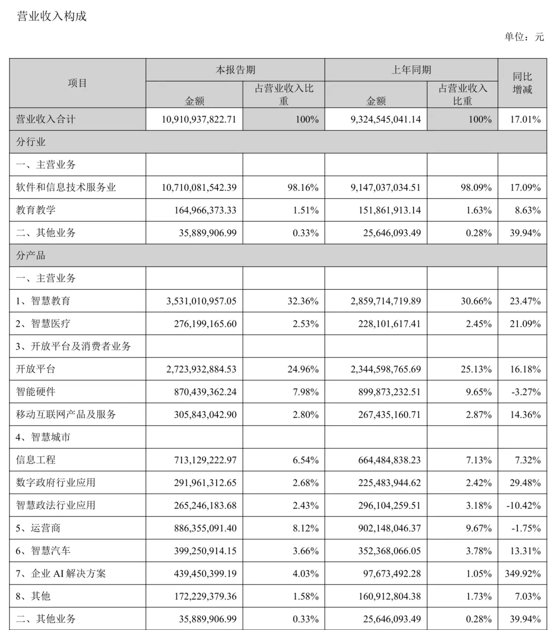 公司積極搶抓通用人工智能的歷史新機遇,繼續保持面向未來搶占人工智能根紅利的戰略投入,上半年研發投入 23.92 億元,占營業收入的比例達 21.92%;