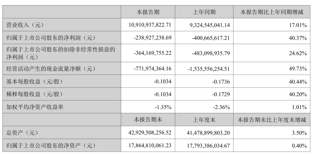 歸屬于上市公司股東的凈虧損 2.39 億元,上年同期虧損 4.01 億元;