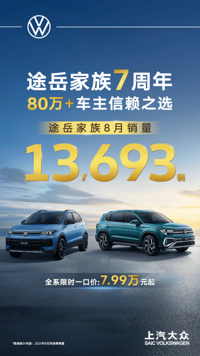8月,上汽大眾途岳家族熱銷13,693輛,持續領跑。七年深耕,途岳家族已成為超80萬車主的信賴之選。這份優異成績的背后,離不開硬核產品力的加持。