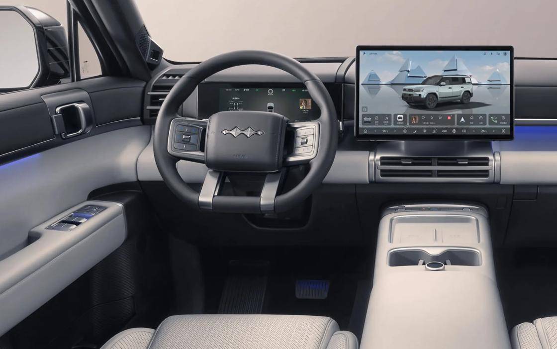 內飾層面:少了些方程豹的機械感,簡潔風格更為明顯。