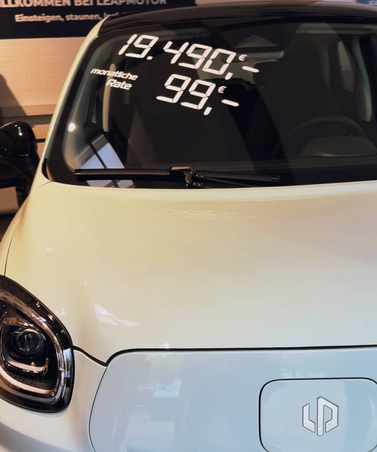 2、它有兩個專屬車身色:風馳灰和電掣黃,除此之外還有很多個性的車身色彩可選。首發(fā)亮相的是一臺電掣黃,后來在慕尼黑一家零跑中心我看到了一臺灰藍色涂裝展車,應該是官方所說的“星夜藍”,視覺效果也非常好。