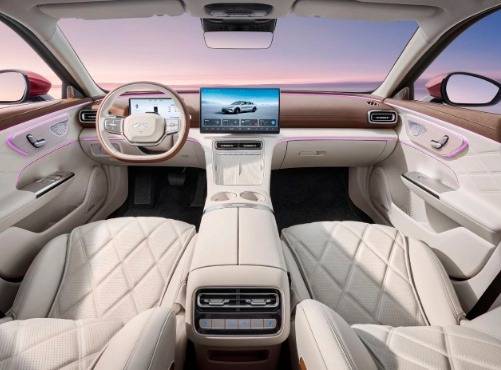 風云A9L的舒適性也比較出色,觸手可及的區域都有皮質包覆,并采用的是OEKO TES認證嬰幼兒級環保材料,座椅采用13層舒適座椅結構,并采用邁巴赫同款雙絎縫工藝,前排座椅標配加熱,且副駕配備了零重力座椅,可使腿與心臟達到同一高度,乘坐體驗更舒適。后排配備加熱功能,配合23揚聲器的伯牙之音音響系統、車載香氛系統、主動式全包圍豪華氛圍燈,其舒適性和豪華感也足以媲美高端車型。