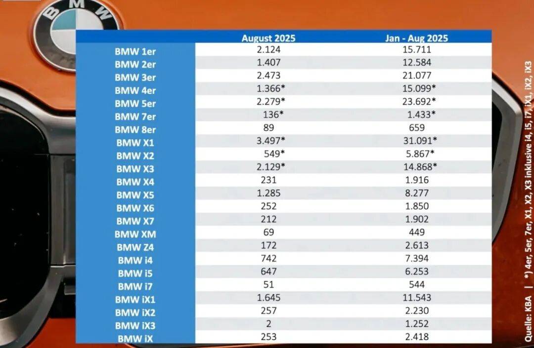 據德國聯邦汽車運輸管理局(KBA)最新公布的今年8月注冊量(銷量)數據,寶馬X1(包括純電動iX1)自今年以來 (除了1月份5系銷量險勝),月月穩居榜首,并在年度累計銷量中建立起明顯的領先優勢。