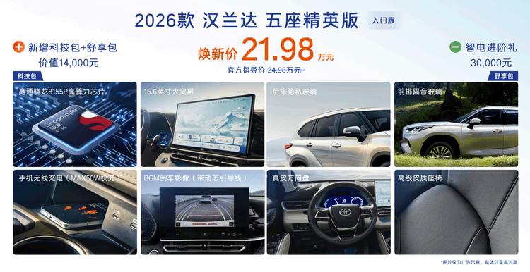 本次煥新的核心,是“入門價值大幅提升”。廣汽豐田沒有選擇在頂配車型上堆砌“炫技型配置”,而是將用戶最常用、最易感知的高價值功能全面下放至入門版本。