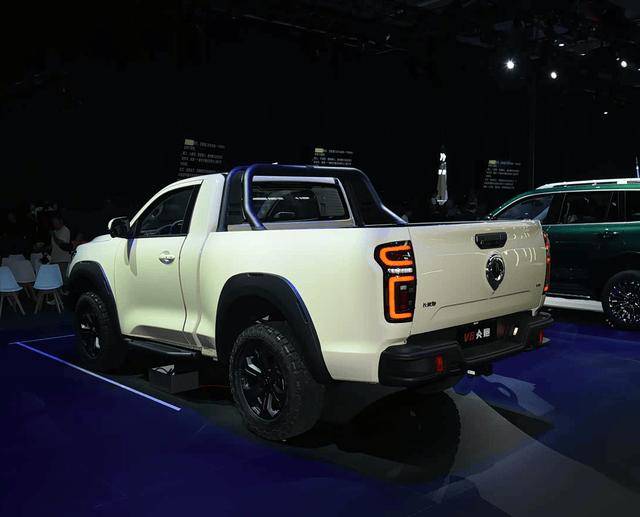 新車將于9月23日上市,此前已在2025成都車展開啟預售,預售價22.98萬元起。作為一款專為越野場景打造的賽級皮卡,新車外觀延續家族硬派設計語言,采用雙門單排短軸座艙結構,大尺寸黑色中網外框加入熏黑裝飾件,前包圍采用半圓式貫通設計,與輪眉線條渾然一體,強化肌肉感,車尾新增“V6”專屬標識。