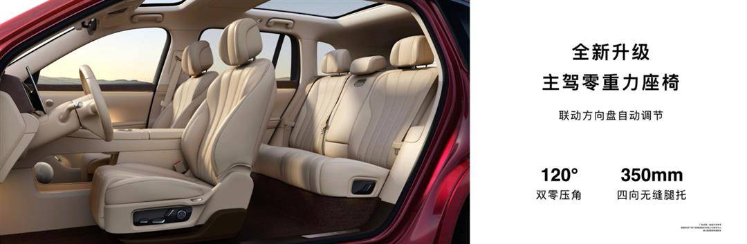 空間和座椅靈動性方面,大五座,二排腿部空間達1030mm,頭部空間1050mm,可切換雙人沙灘椅模式,舒展加倍;更支持3m大床模式。六座版二排配備零重力座椅,120°雙零壓角 搭配水平自適應扶手,隱藏杯架、66W快充 與手機位俱全。三排腿部空間達810mm,頭部937mm,寬敞不將就。