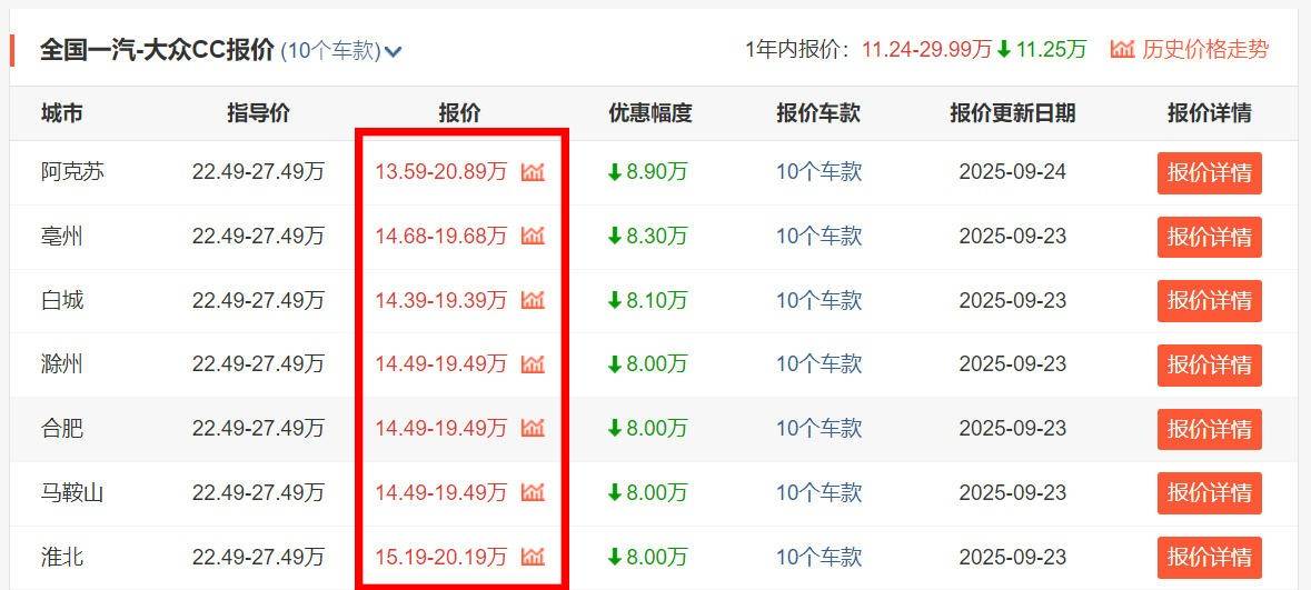 有著“最美大眾車”之稱的一汽-大眾CC車系,眼下在部分地區已經只需要最低的13.59萬元就能夠買了。