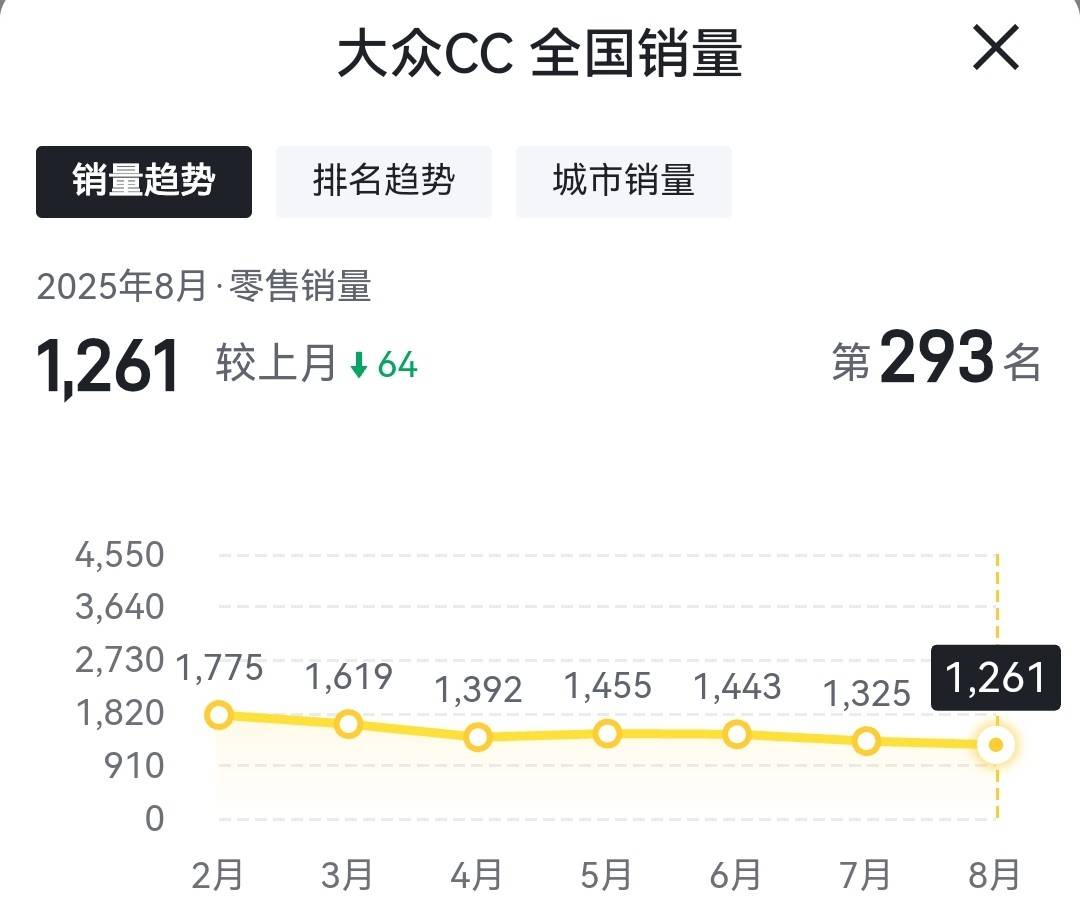 可惜的是,即便buff疊滿、終端價格也已經足夠給力,CC這車在近幾個月的平均月銷量卻依舊是只有不過區區千余臺。和同級別的凱美瑞、帕薩特、、邁騰相比,銷量數據差了更是不止有十倍。因此,到這也就不禁讓我想要問問大家:一汽-大眾CC為何沒有大賣呢?
