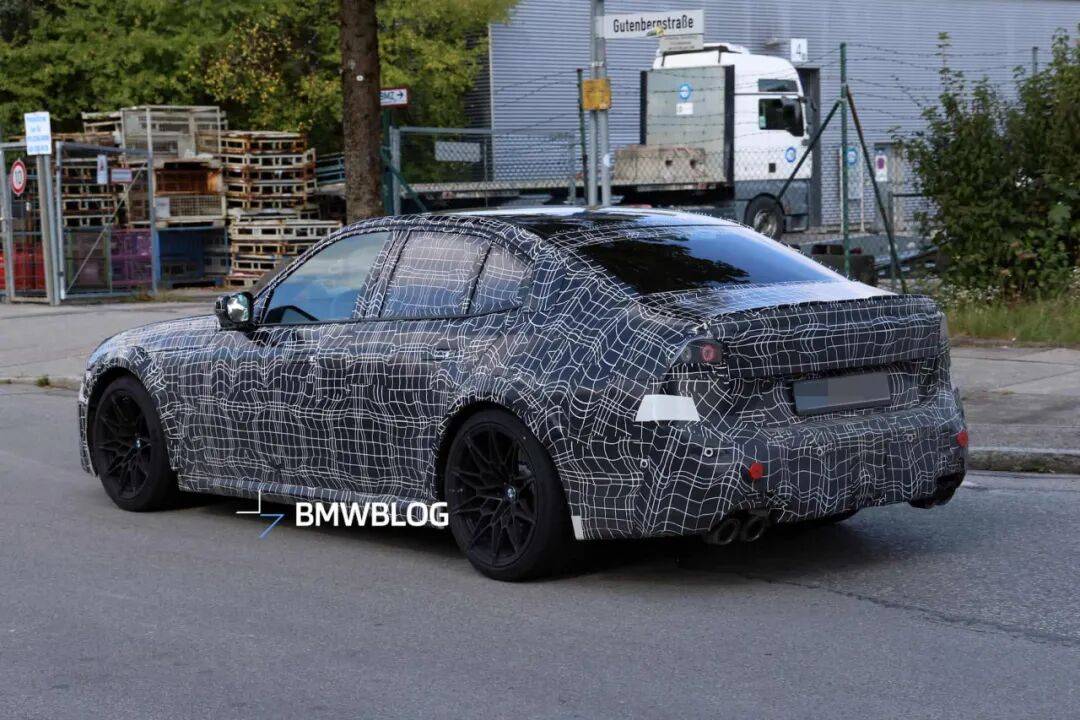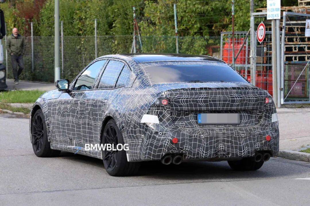 車(chē)身側(cè)面,這臺(tái)測(cè)試車(chē)配備了隱藏式門(mén)把手,這是新世代車(chē)型的一個(gè)標(biāo)志性設(shè)計(jì);后備箱蓋上有一個(gè)擾流板,標(biāo)志性的四出排氣同樣醒目。不過(guò),尾燈完全被塑料偽裝覆蓋,其最終設(shè)計(jì)目前仍是未知數(shù)。