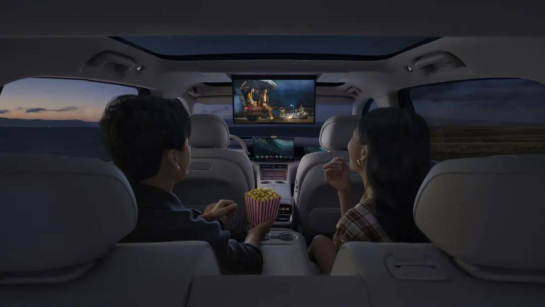 全新問界M7搭載全新16.1英寸3K懸浮中控屏,并全新搭配26英寸WHUD抬頭顯示系統(tǒng),高配版還有68英寸AR-HUD,駐車狀態(tài)下三指左滑即可秒變私人影院。