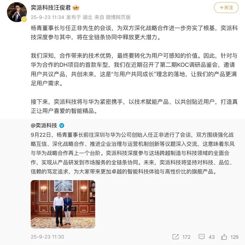 最近一兩年時(shí)間,東風(fēng)汽車全面擁抱華為。就在9月22日,東風(fēng)高管集體拜訪華為一事,引發(fā)了業(yè)內(nèi)關(guān)注。當(dāng)天,汪俊君通過微博透露,DH項(xiàng)目首款車型已在近期召開了第二期KOC調(diào)研品鑒會,并邀請用戶共議產(chǎn)品。據(jù)悉,DH系列將聚焦于中高端智能化車型,首款產(chǎn)品已確定為一款高端智能全尺寸SUV,代號“XY”,計(jì)劃于2026年正式推向市場。